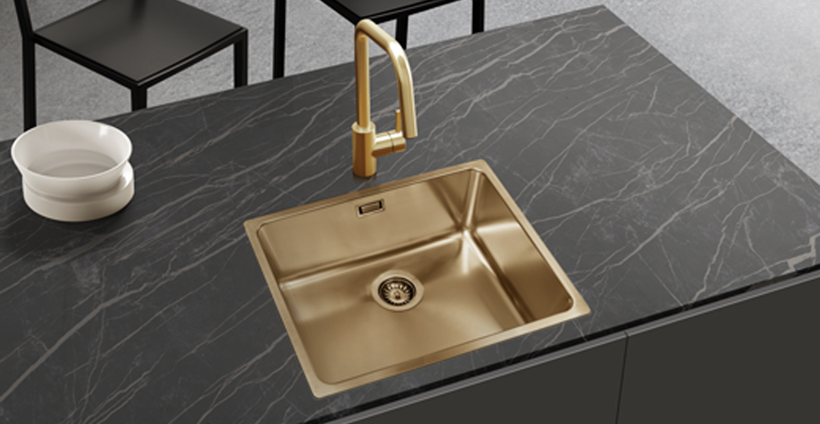Fregadero dorado y negro, disponibles en diferentes medidas: